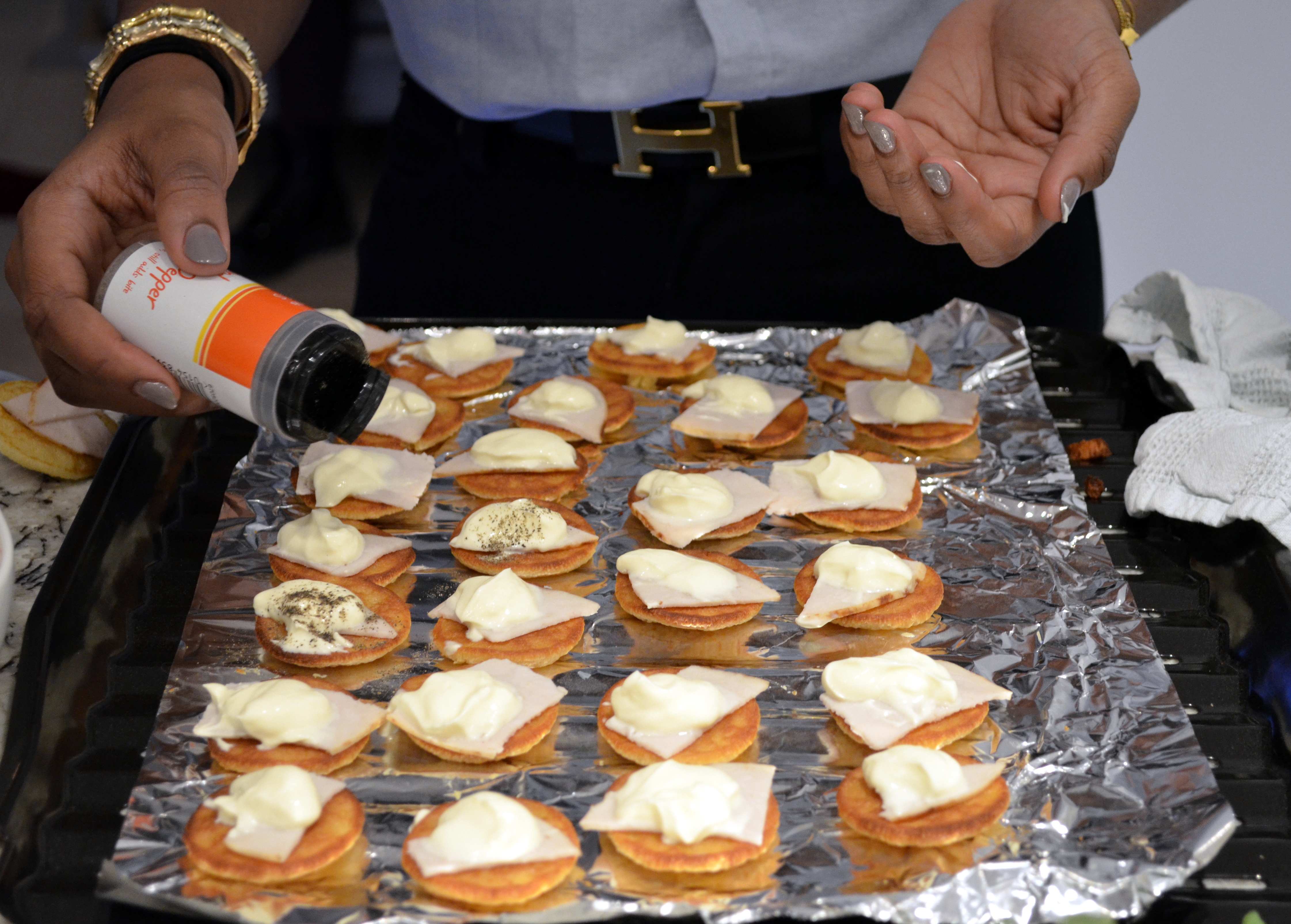 Yesterday was the official food tasting of HeyEater, a start-up catering company by my beautiful friend Didun Hassan-Odukale. Each time Didun cooks, I am pleasantly surprised and yesterday was no exception. The food was gorgeous as always, the champagne was flowing, beautiful people in their beautiful fashions were present and jokes + laughter were shared. My faves on the menu were Prawn, Chorizo & Tomato kebabs; Mini Cheese Burgers with a special homemade Mayo and BBQ sauce; Turkey Blinis; Smoked Salmon, Cottage Cheese & Rocket Rolls amongst others. I was in my zone. I knew how much I was going to eat and therefore dressed appropriately. Bodycon, what is that?