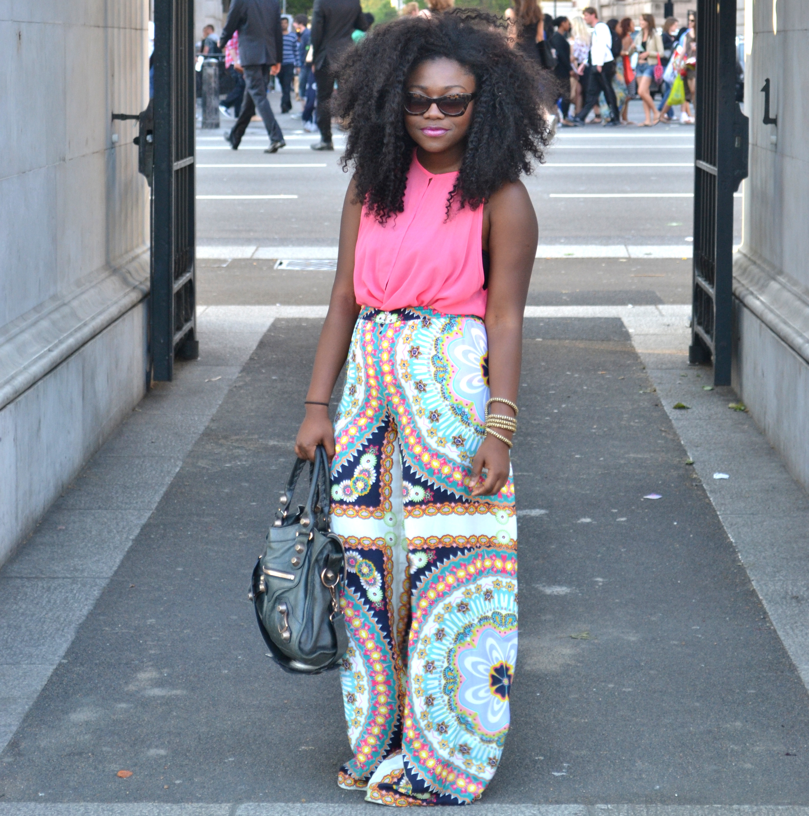 Zara Top and Trousers, Balenciaga Bag, ASOS sunglasses